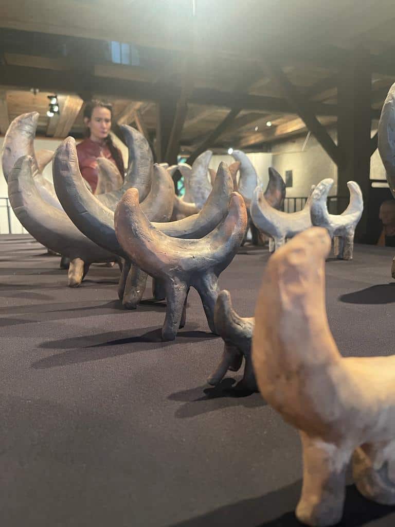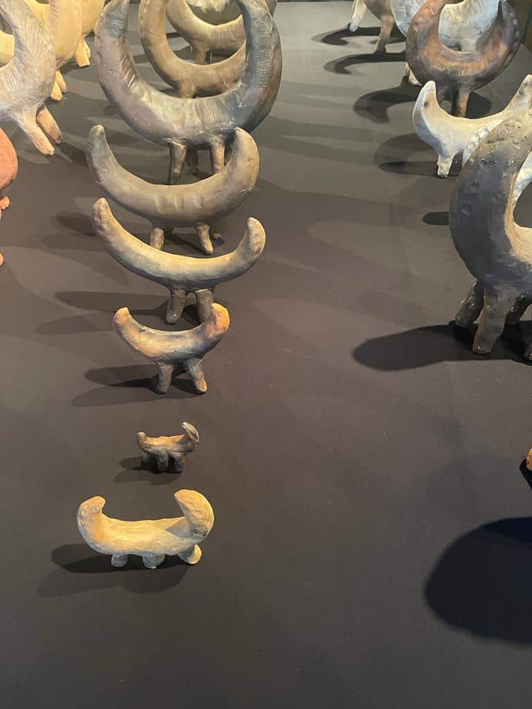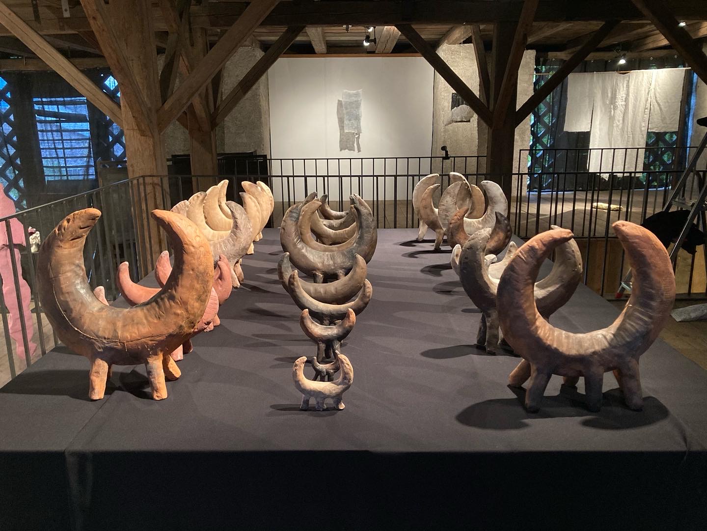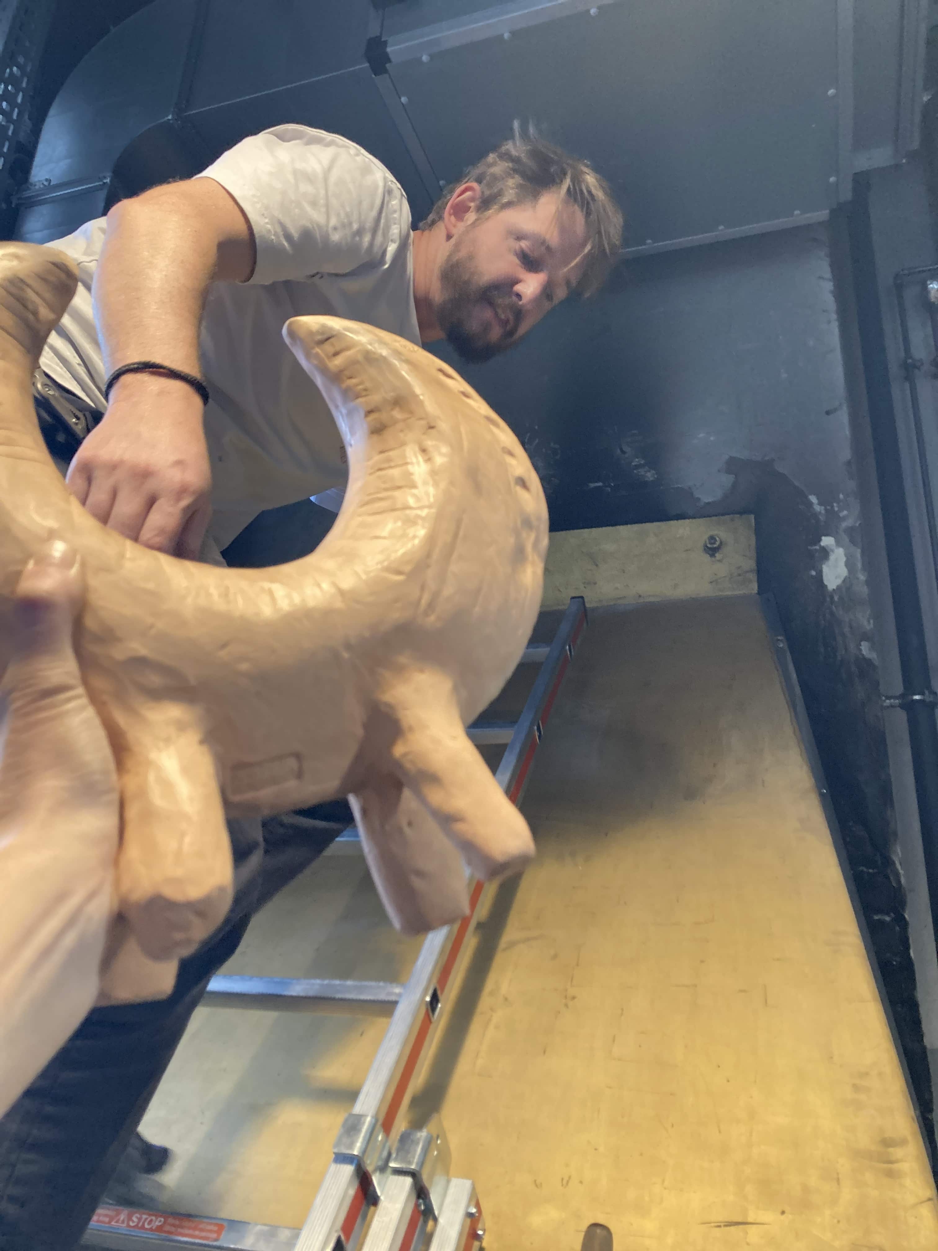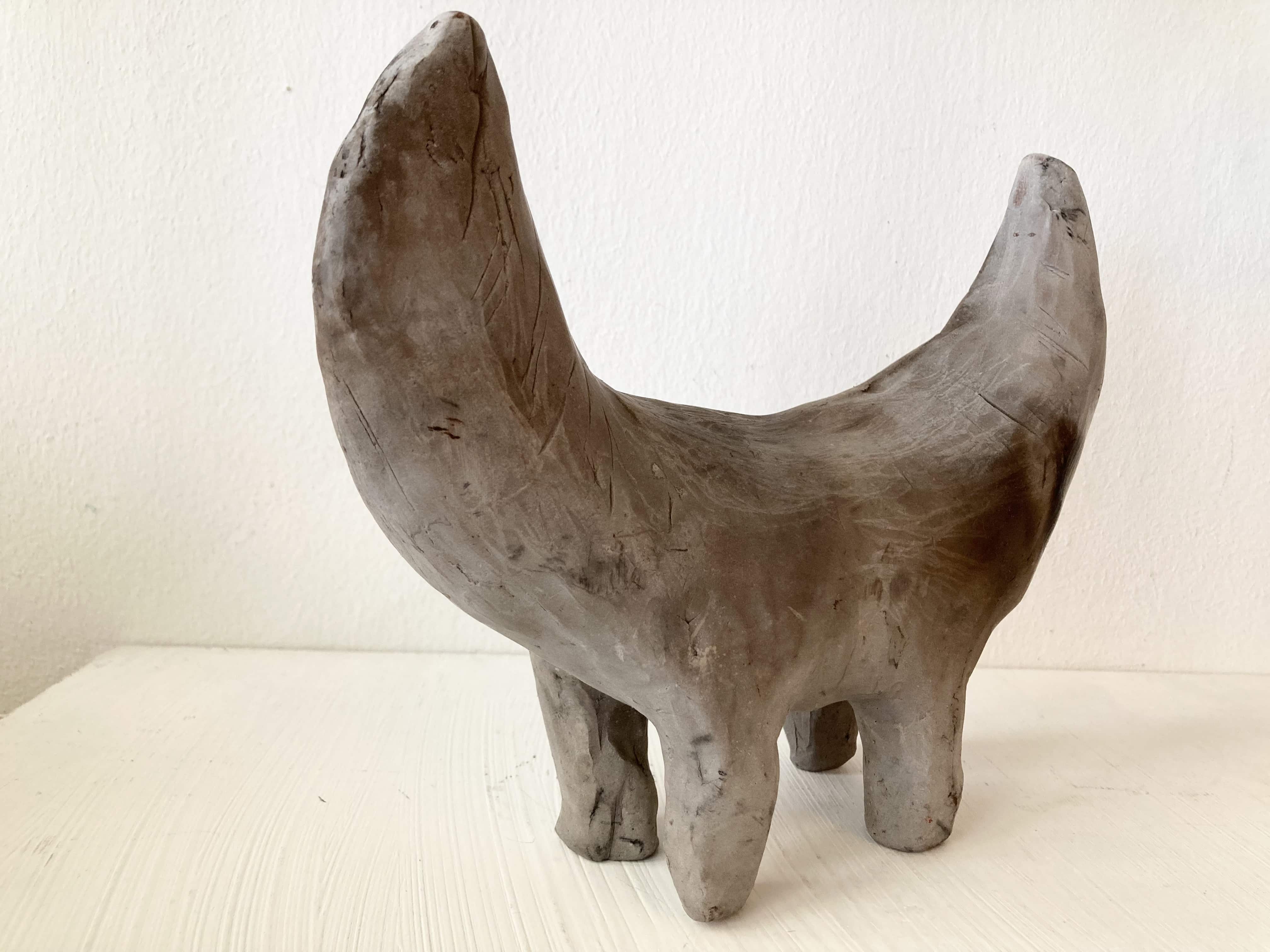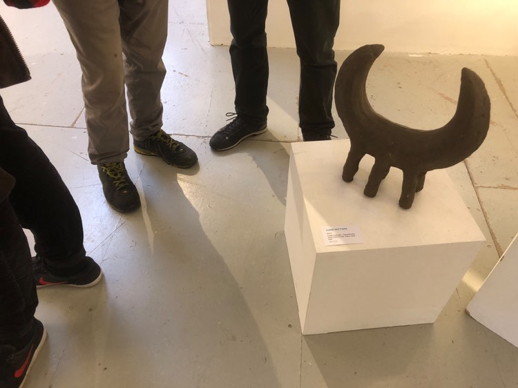 Form, Material und Machart der Feuerhunde ist angelehnt an prähistorische Tonhornobjekte, die in weiten Teilen Europas in der Bronzezeit gefunden wurden. Anhand der Inschrift – Warnung vor dem Hund – wird Expressis Verbis der wohl älteste Freund des Menschen zum Schutz für Haus und Hof angerufen. Der Hund hat in zahllosen Mythologien einen zentralen Platz als Zwischenwesen, Psychopomp, als Führer zwischen dem Leben und dem Tod, Bekanntem und Unbekanntem, Menschlichem und Tierischen, Bewusstem und Unbewusstem. Apotropäische, unheilabwehrende Objekte können Trost und Sinn stiften und zu einem besseren Leben beitragen.