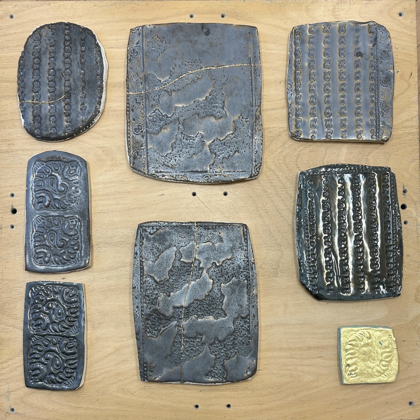 Das Ergebnis ihrer Zusammenarbeit ist eine Fusion/Mischung (im Gefäß der Gepäckausgabe) aus verschiedenen Essenzen ihrer Biografien, ihrem Erbe (Druckstöcke von Bettina Mürner) und Inspirationen (Pharmazie, Schwarzkeramik, Urnen bei Amrei Wittwer). Das was vom Leben überbleibt, Spuren und Manifestationen als Ornamente und Objekte sind der gemeinsame Nenner der verschiedenartigen aber in ihrer Intention ähnlichen Werkserien (auch Episoden genannt) aus Keramik. Die Präsentation im Raum erlaubt es, jede Serie für sich zu betrachten, wie museal angeordnet und so den eigenen Kontext beanspruchend. Fast übersehen werden kann neben dieser «großen» Inszenierung das unscheinbare kleine Nebenprodukt, das im Wesentlichen die Zusammenführung von Druck/Ornament und Keramik/Kunstwerk bedeutet: flache Platten, in die das Muster eingedrückt wurde. Die Künstlerinnen feiern Zusammen das, was sie beide am meisten interessiert, so scheint es: Das Transformieren und dann Festhalten (Härten) von Motiven und Gedanken, Wünschen, die ein Leben begleiten und sie feiern somit das, was bleibt und gut ist, wie es ist!
