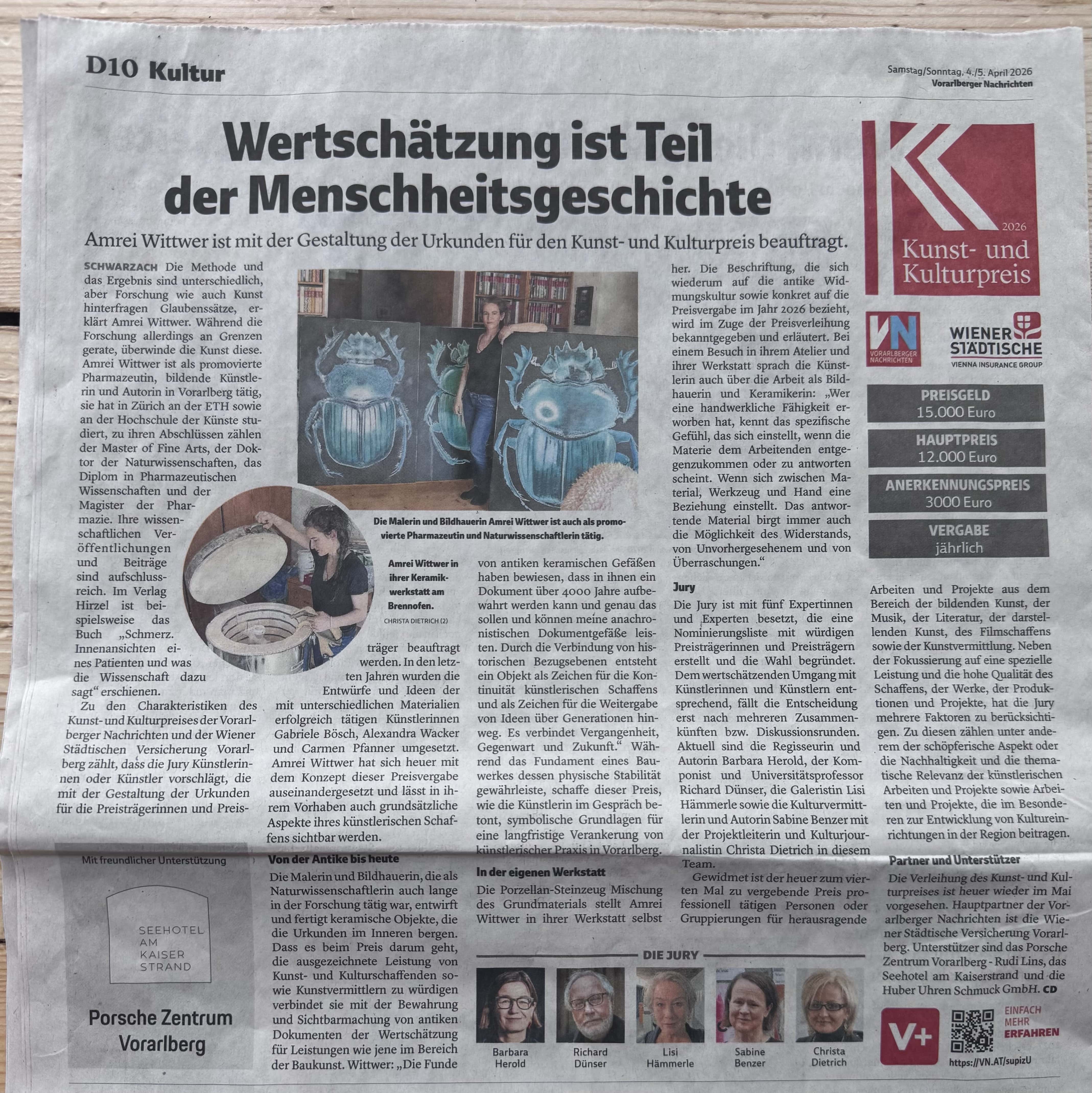 Gestaltung des Kunst und Kulturpreis der Vorarlberger Nachrichten und Wiener Städtischen 2026. Vergabe am 6. Mai